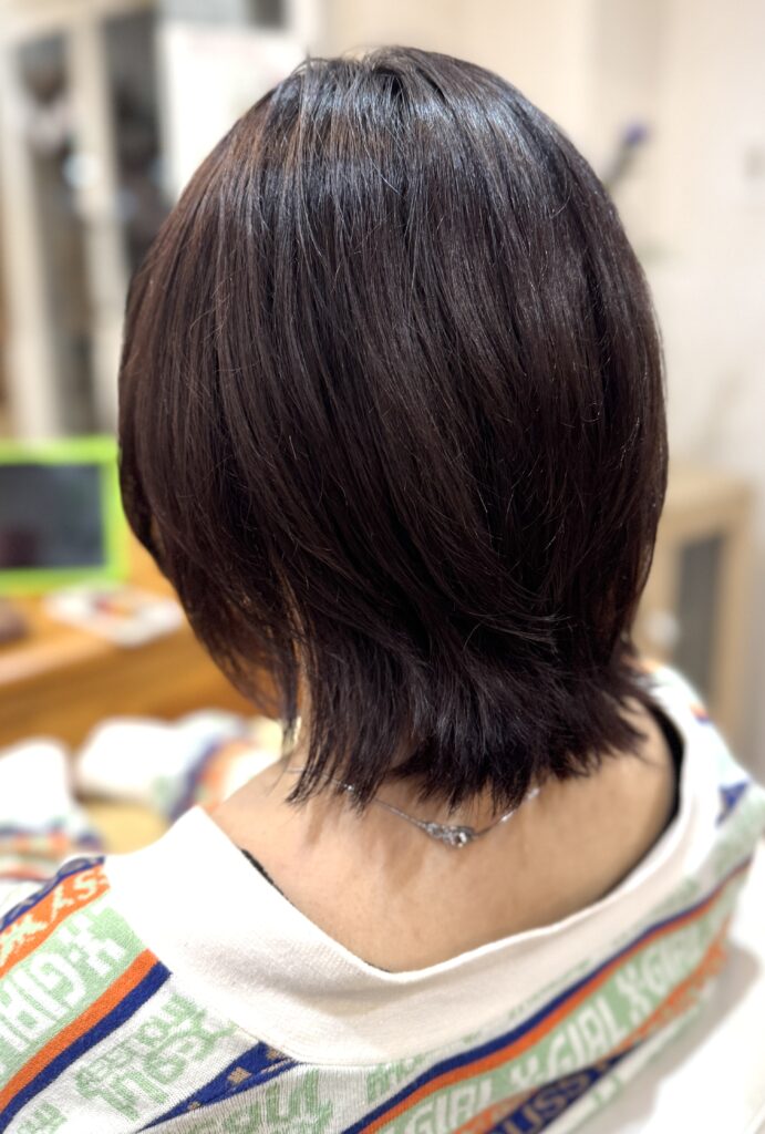 後ろはボブで、前の方はウルフみたいに軽く