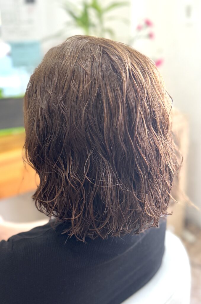 仕上げはムースをしっかり揉み込んで、簡単にセットできるようかけてます!